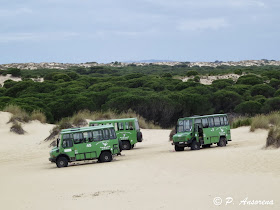 A las 8 de la mañana, como teníamos concertado, nos acercamos al centro de visitantes del parque, donde nos recogió un camión unimog y junto con otras personas nos dieron un paseo de 4 horas por Doñana, una maravilla de recorrido donde disfrutamos mucho del paisaje dunar y su fauna.