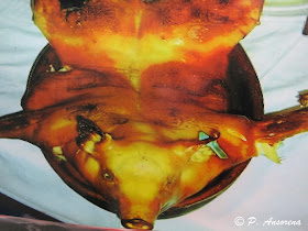 No podíamos pasar por Arévalo "sin darnos un homenaje" y disfrutar de uno de los platos estrella de la gastronomía castellana y en especial de la población que estábamos visitando, el buen "tostón" hecho como Dios manda, así que nos armamos de paciencia y con tranquilidad "le metimos mano".