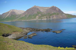 Como ensimismados ante tanto derroche de naturaleza y belleza, asistíamos con un poco de pena, al ver como el barco en su rumbo superaba la boca del fiordo y poco a poco dejaba atrás la costa islandesa, un país, que por nuestra edad, sera difícil que volvamos por aquí, pero nos ha entusiasmado.